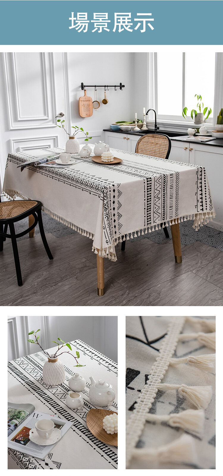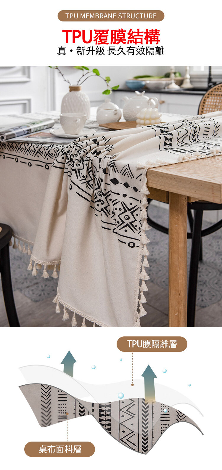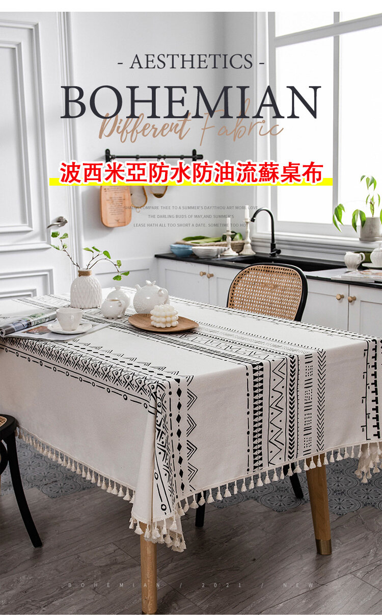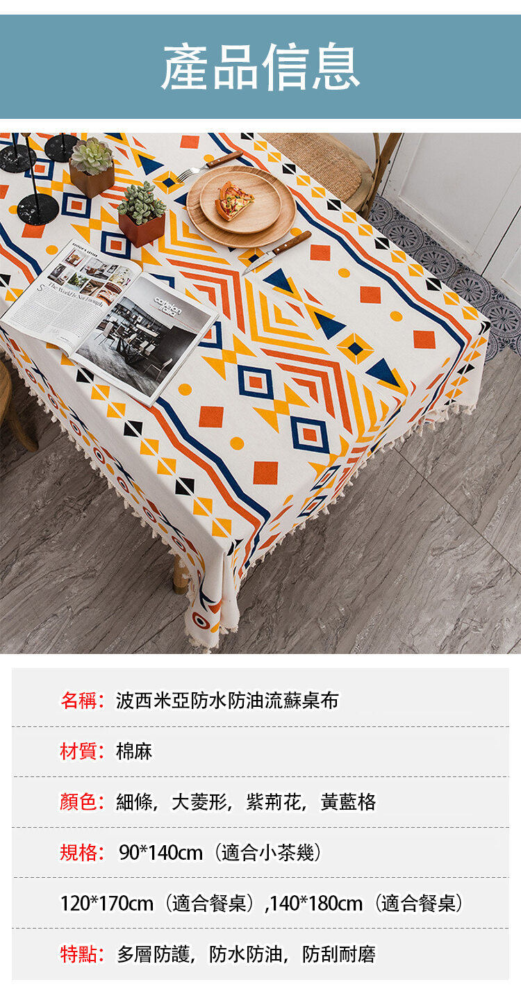 波西米亞防水防油流蘇桌布