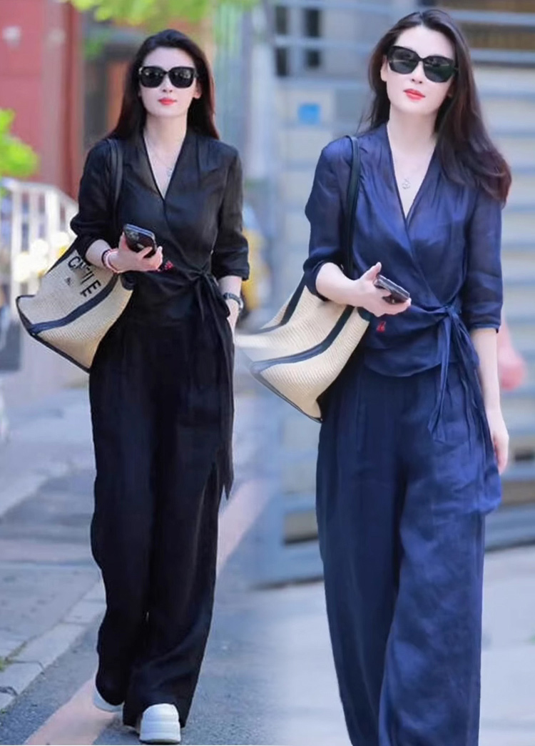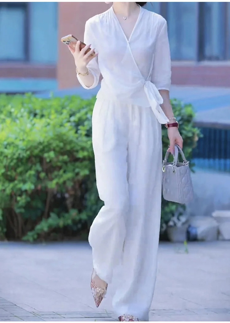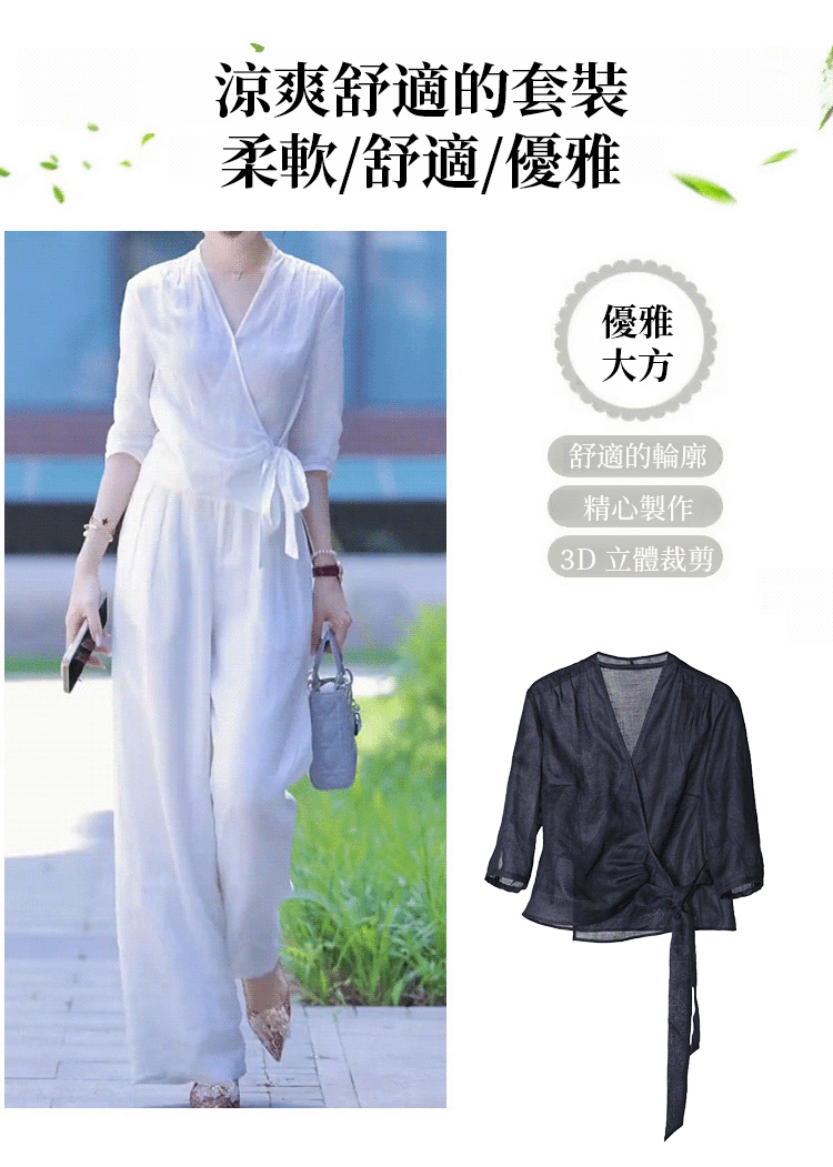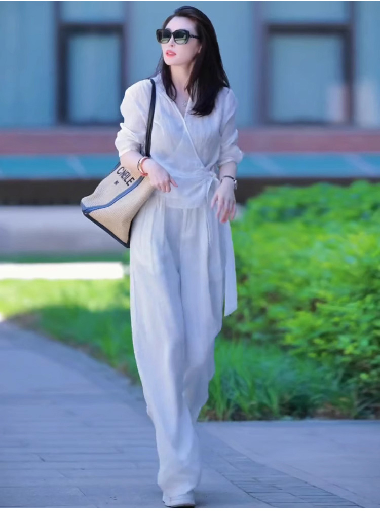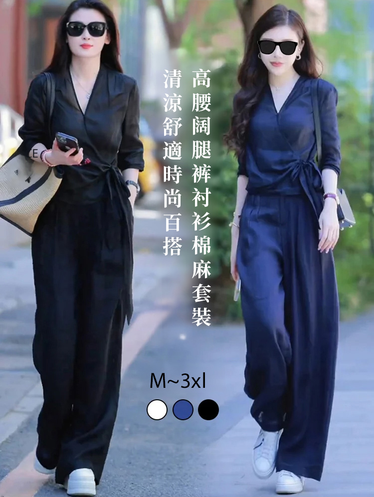 高腰寬褲襯衫棉麻套裝