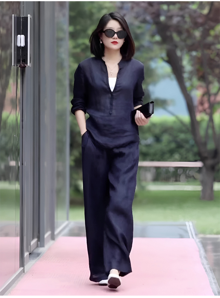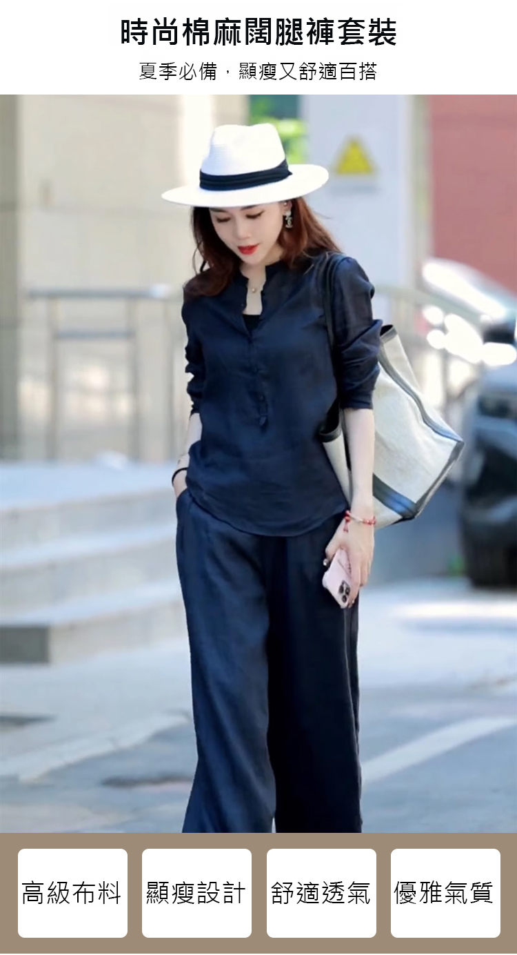 2025爆款夏季時尚棉麻闊腿褲套裝