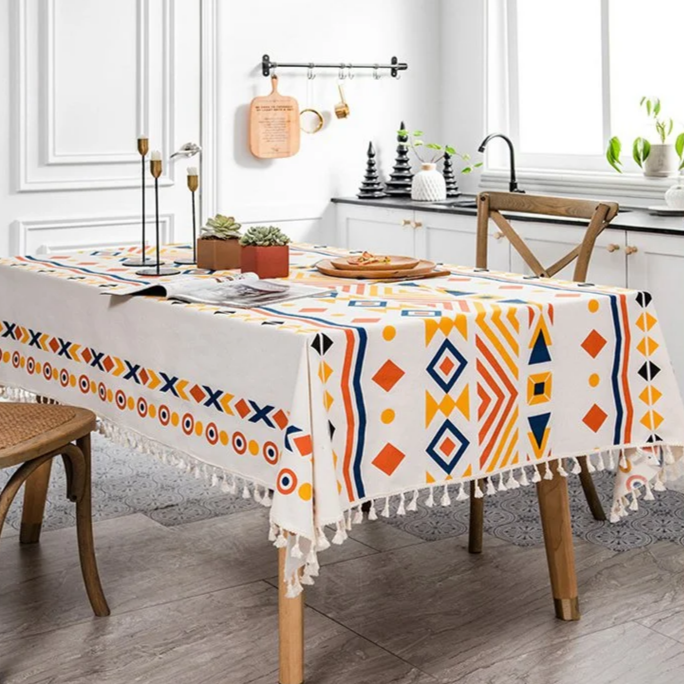 Boho wasserdichte und ölbeständige Tischdecke mit Quasten